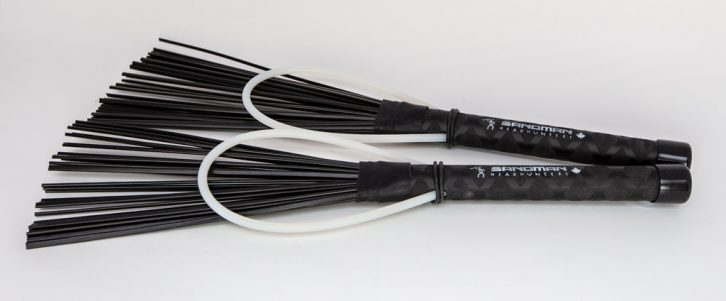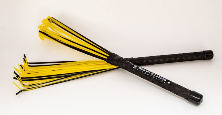 Bear Claws create some unique sound possibilities. The handle has steel beads and can be used to end to end for an effective shaker sound. The polyrod material is fared and the ends are molded to a 90-degree bend creating the ‘claw’. With the claws in a swatting position, they can be used to create cool scratch effects on coated heads and when striking, they have more definition. By flipping them over or ‘knuckles’ down, they will sound similar to our other polyrod brushes but, the steel beads have added another sound dimension within this texture.