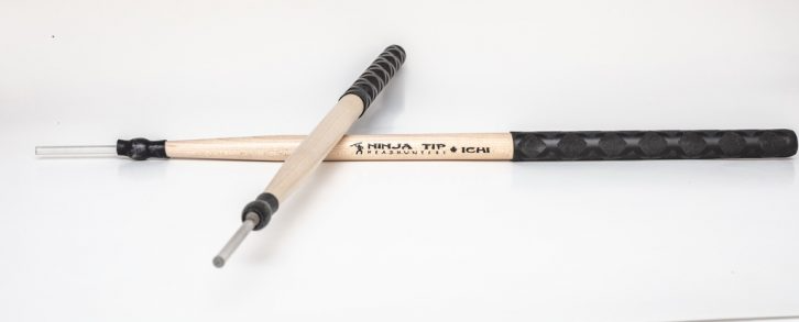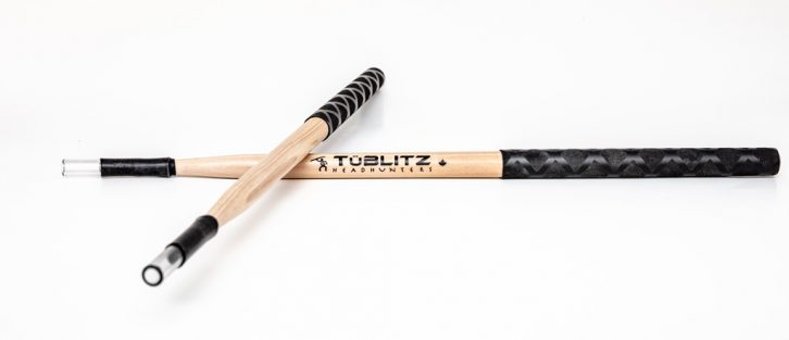 Tüblitz are available in one model, the Tüblitz are based on a 5B hickory platform. A 2” long 3/8” diameter clear polycarbonate tube is pressure fitted over the tip area of the 5B. The tube has a natural flex and forces the drum stick to bounce much quicker than a regular drum stick. The tube produces a natural volume level which is less than that of a drumstick and has a wonderful dark cymbal tone. The bounce is much faster than a comparable drum stick and there is very little resistance or friction so it is very easy to execute buzz rolls and maintain a very soft a low volume dynamic.